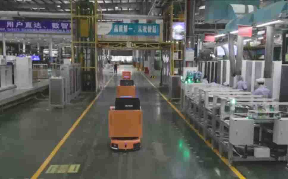 为车载冰箱物流配送打造的智能解决方案,,包含产中物流通过潜伏举升AMR搬运至线边,,产后成品物流智能仓储,,,,流程包含产中物流智能齐套入库,,,,线边安灯叫料AMR智能配送至线边,,成品入库、、、、出库,,,,通过无人堆高车机器人,,智能仓储管理替代人工作业管理,,,,实现更高存储、、、、更高效率、、、更具柔性化的解决方案。。。
